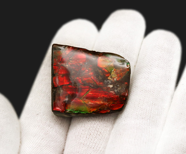 | 学名 | 濃く深いレッド、差し色にグリーンも!約8000万年前の海洋生物が宝石化したアンモライト(Ammolite)の天然原石 |
