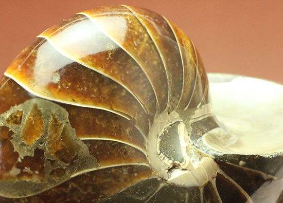 この深い飴色。オウムガイ独特のシンプルな模様です。