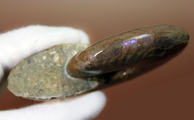 極彩色のイリデッセンス(iridescence)を楽しめる、マダガスカル産の遊色アンモナイトをご紹介します。このブルーを御覧ください!