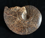 最後の一巻きが非常に大きい、いわゆる密巻きのアンモナイトです。プラセンチセラスという属は、あのアンモライト(カナダ・アルバータ州産)と同属です。採集される地域によって堆積環境が異なるため、化石の質も異なります。よく見れば、形がそっくりであることにお気づきでしょうか。