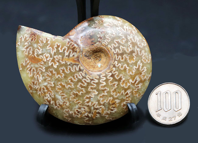 100円玉との比較。全体が縫合線に覆われた、ザ・縫合線モンスター。