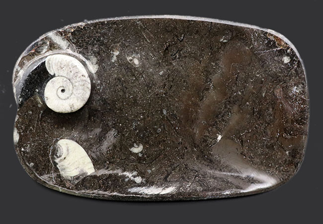 | 学名 | 小物入れにいかが?古生代デボン紀の地層より採集されたゴニアタイト(Goniatite)を含む石を加工した皿 |