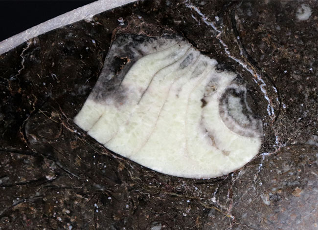 9回目の購入です。一面真っ黒なシンプルで趣のある化石皿が届きました。台座に飾って遠くから見ると、一見ベタ塗りの黒い皿にしか見えませんが、ある程度近づくと化石独特の不規則な波模様や細かなヒビ、更には小さな貝類がはっきりと浮き上がるように見えてきます。鑑賞する距離一つで大きく姿を変えるのが、この化石皿の醍醐味と言って間違いないでしょう。他の化石皿と並べると、そのシンプルさが際立ちコレクションに深みを与えてくれています。今回も非常に満足する品でした。また購入させていただきます!ありがとうございました。