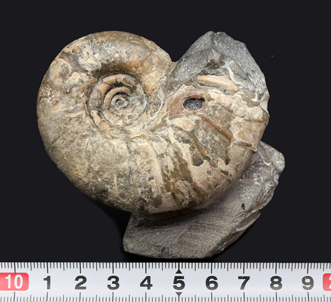 こちらは北海道産の白亜紀のアンモナイト、ゴードリセラスです。母岩が台座の代わりになるタイプ。