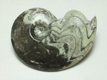 ゴニアタイトは古生代の海を代表する生物の一つです。シンプルな「平巻き」が特徴で、本標本のようにポリッシュすると、独特の幾何学模様が現れ、調度品として大変人気があります。