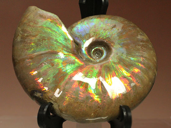セブンさんのホームページで、輝くアンモナイの写真を見て幸せな気分になっていましたが、今回思いきって購入しました。箱を開けると、両面輝くアンモナイトがとても綺麗で大変満足しています。写真で見ていたのですが、自分の手にとって見るのとは感激の度合いが違います。すぐに届けて頂いて、ありがとうございました。