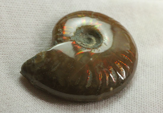 上質な輝き。マダガスカル産以外に、光るアンモナイトはイギリスの平巻きアンモナイトカロセラスやフィロセラス種、そしてカナダのアンモライトが有名です。上記アンモナイトはそれぞれ光り方に特徴があって、いずれも独特な美しさを有します。