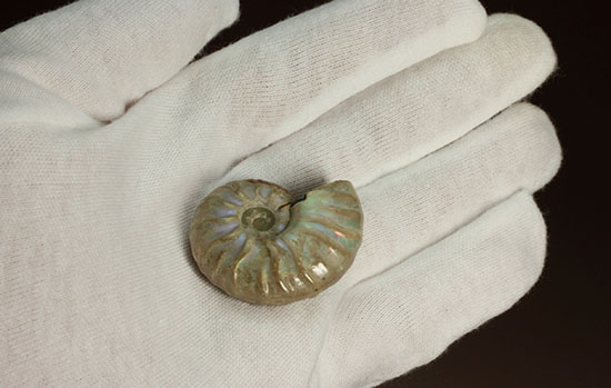 レインボーカラーで幻想的に輝く直径3.6センチの可愛らしいアンモナイトが登場です。希少色青も見られます!
