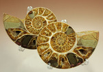 こちらはペアのもう1枚のアンモナイト。ちょうど真ん中でカットしていますので、中央ヘソ部分もしっかり見ることができます。