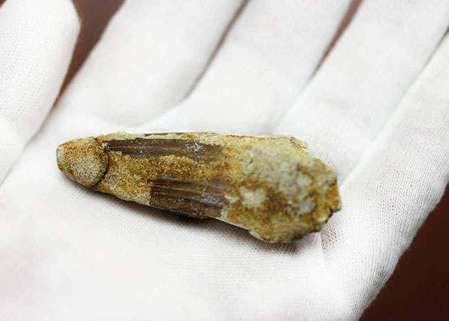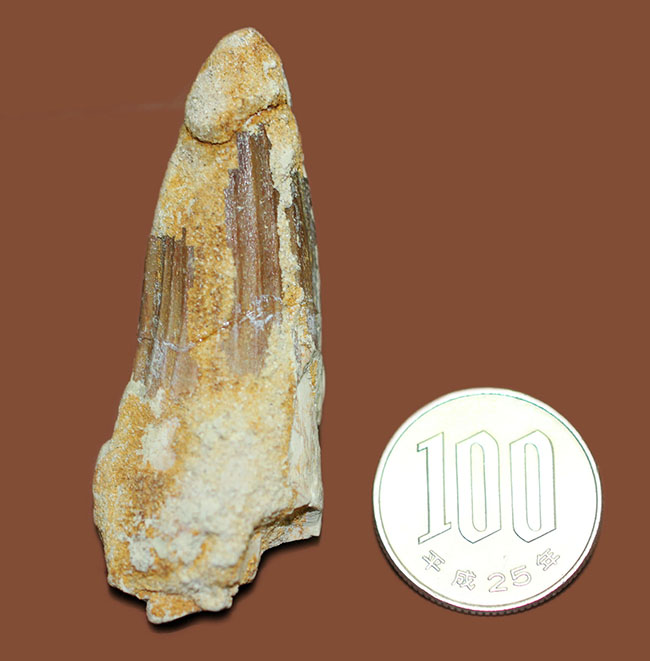肉食恐竜最大級、スピノサウルスの歯化石をご紹介します。スピノサウルスの歯の形状はスレンダータイプ、ゴツいタイプに分かれますが、本品は丸みのあるゴツいタイプです。