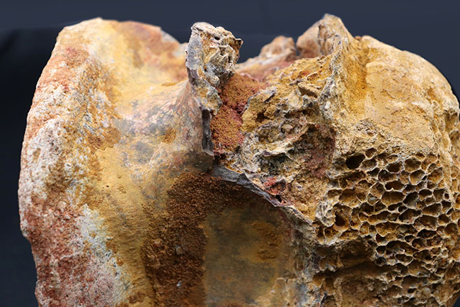トラス構造になっている部分。頚椎でもなくても骨端部ではよく見られる構造です。恐竜の爪化石全般やトリケラトプスのホーンなどでも同様の構造が見られますね。蜂の巣のようです。
