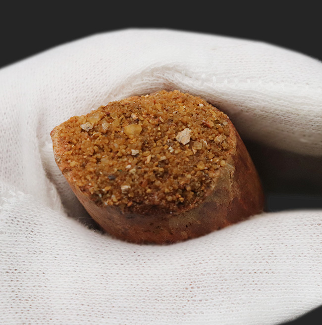例えるなら、「かっちかちの石のたけのこ」です。見た目はたけのこみたいでやわらかそうですが、手にするとずっしり重くて冷たいです。こんな尖った石のような歯が古代の水辺で毎日のように魚に突き刺さりまくっていたとは・・・。魚も即死どころのさわぎではなく、一瞬でこの石のたけのこが何本もささり原型をとどめていなかったことでしょう。
