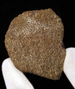 パタゴニアでは、ティタノサウルス類(竜脚類)の集団営巣地が数多く発見されています。中には、胚(赤ちゃん恐竜)が残された卵の化石も確認されています。これらは、多くが竜脚類の卵と考えられています。 特徴としては、 ・ほぼ球形〜亜球形 ・厚く堅固な卵殻 ・表面に粒状のオーナメント(結節状の微細な模様) などが挙げられます。 本標本も、しっかりとした厚みと明瞭なオーナメントが見られます。