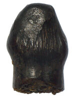 こちらは、白亜紀最末期マーストリヒト期に生きた「最終進化系」の恐竜、テスケロサウルスの歯化石です。テスケロサウルスとは、ギリシャ語で「驚くべきトカゲ」の意味を持ちます。また、種小名のネグレクタスはラテン語で「見落とされた」「長く放置された」を意味します。まとめると、“長く見落とされてきた驚くべきトカゲ”という、大変ユニークな意味を持つ名前です。 1891年、アメリカ・ワイオミング州ランス層で小型草食恐竜の全身骨格が発見され、スミソニアン博物館に収蔵されました。しかし標本はラベルもないまま木箱に長く放置されていたのです。1913年になって、チャールズ・W・ギルモアが新種として認識し、この印象的な名前が与えられました。名前そのものが「発見のドラマ」を物語る、コレクター心をくすぐるエピソードです。