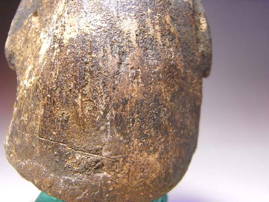 ティラノサウルスの歯は非常に太く長いのが特徴です。他の獣脚類に比べてもその特徴は明確で、切り裂くというよりは噛み砕くのに適していました。歯根(歯額の中に埋まっている部分)も非常に長かったという事実がよりこの特性を裏付けています。歯茎より上、つまり見えている部分が7-8cmにも関わらず、歯茎に埋まっている部分が22-23cmという化石が実際に発見されています。