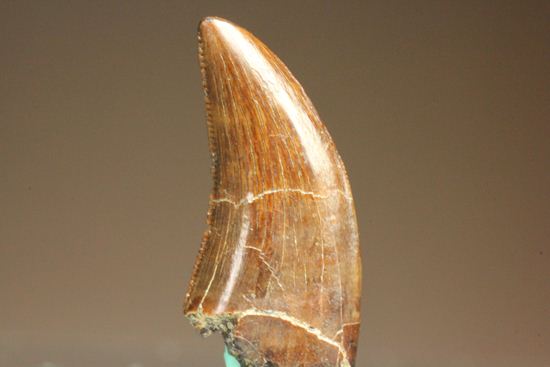 | 商品解説 | エナメル、セレーションがしっかり保存されたドロマエオサウルスの歯化石の登場です。 ドロマエオサウルスは、体長1.5m~2m、体重30㎏前後のスレンダーな小型獣脚類です。 肉食恐竜にふさわしい鋭い鉤爪が本標本で存分に鑑賞できます。 まさに、獲物を倒すために特化されたかみそり刃のような歯がみてとれます。 本標本は、エナメルの保存状態がよく、細かいギザギザ状のセレーションもしっかり確認できます。 ルーペのご用意をおすすめします。 |