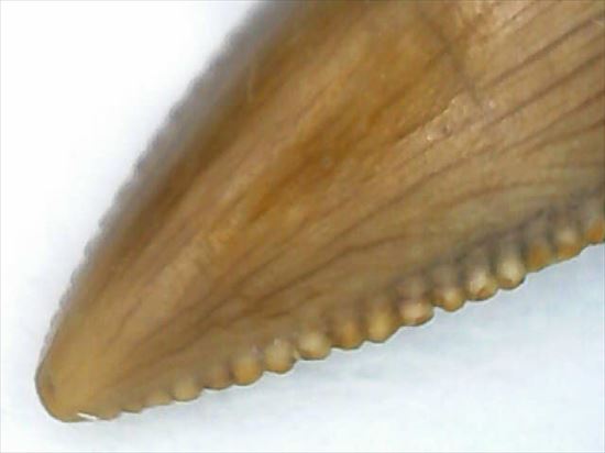 保存状態抜群のバハリアサウルスの歯化石です。このように完全なセレーションが保存されています。