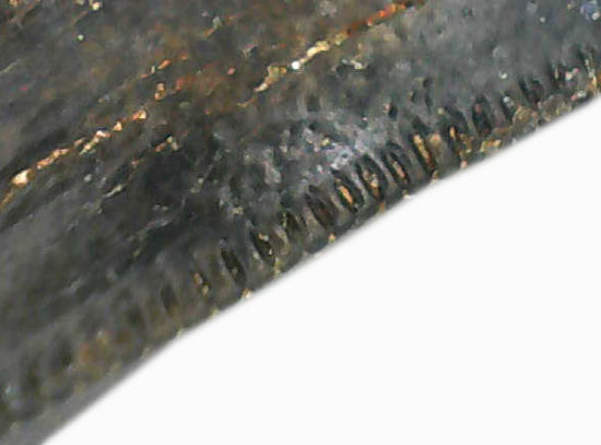 エナメル質の質感はナチュラルで、セレーションもご覧の通り、一つ物一粒しっかり保存されています。