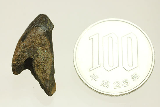 幅も厚みもしっかりあります。最も進化した角竜、トリケラトプスの頑丈な歯化石です。