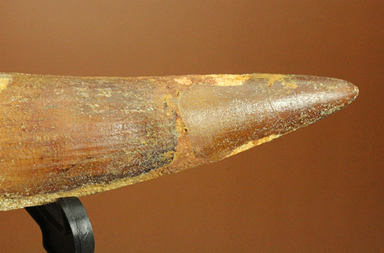 - ド迫力!驚くべきサイズ(ロングカーブ計測13.5cm)を誇る、スピノサウルス巨大美麗歯化石