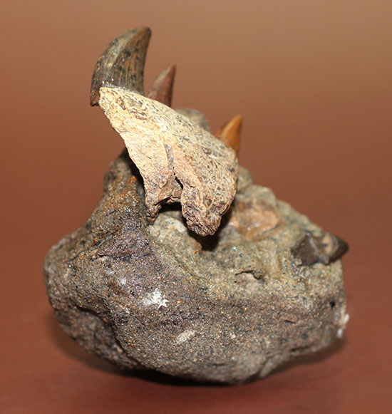 | 学名 | 私は初めて見ました!小型肉食恐竜ラプトルの顎付き歯化石。正真正銘の博物館化石。 |