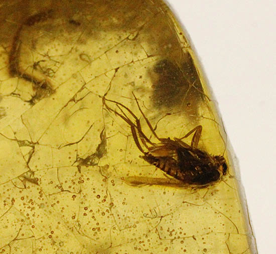 琥珀とよく間違えやすいものとしてコーパルがあります。コーパルもれっきとした化石なのですが、2者の違いは、比較的年が若いものがコーパル、完全に化石化したものが琥珀です。(別コラムに記載)これらを見分けることは大変難しいとされていますが、見分ける方法がいくつかあります。もし中に昆虫が入っていたら、しかもハエが入っていたらとてもラッキーです。なぜならハエの触角によって琥珀かコーパルかが見分けられる可能性があるからです。琥珀の中には、長い触角をもったハエが多く見られるのですが、短い触角はまれにしか見られません。逆に、短い触角のハエはコーパルからよく発見されます。また、標本にアルコールをつけてみてもその違いが現れます。アルコールはエタノールなどがよいでしょう。コーパルは揮発性の成分が含まれるので、アルコールと反応してねばねばするのです。一方、揮発成分が全くない琥珀は、ねばねばせず、表面はつるつるを保ったままです。