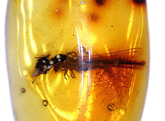 ドミニカ産の虫入り琥珀。クリアーなイエローの琥珀におよそ3千万年前の虫が内包されています。
