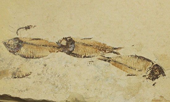 - 三匹並んだ姿が面白い!ニシン科魚化石ゴシウティクティス(Gosiutichthys parvus)の群集標本