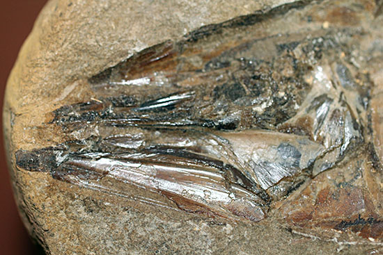 ブラジル産の魚化石。現世に生息する硬骨魚類(こうかくぎょるい)と同じ仲間。
