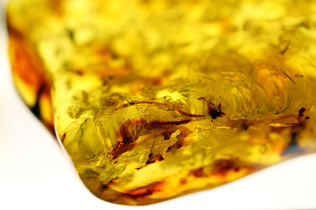 バルト海は、世界有数の琥珀産地として知られています。6.5センチ幅の琥珀に、古代に存在したの植物片がたくさん包まれています。