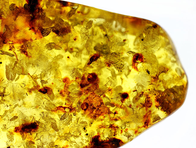 - 琥珀の世界有数の産地、バルト海の琥珀化石。植物片をふんだんに含んでいます(Amber)