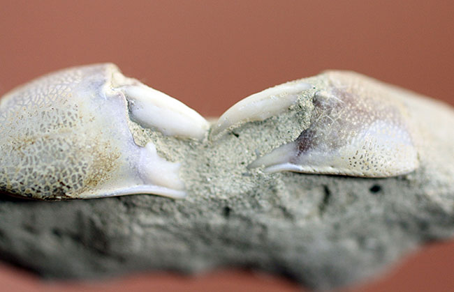 完新世のかわいいカニ化石。新しい時代のものとあって甲羅の表面の凹凸や関節の細部などディティールのクオリティーが高いまま保存されています。まだ多くの部位が母岩に隠れていて、そこを想像するのもまた楽しいし、クリーニングの楽しみも・・・。出所がピンポイントで明らかであるのもうれしいですね。大切にします!