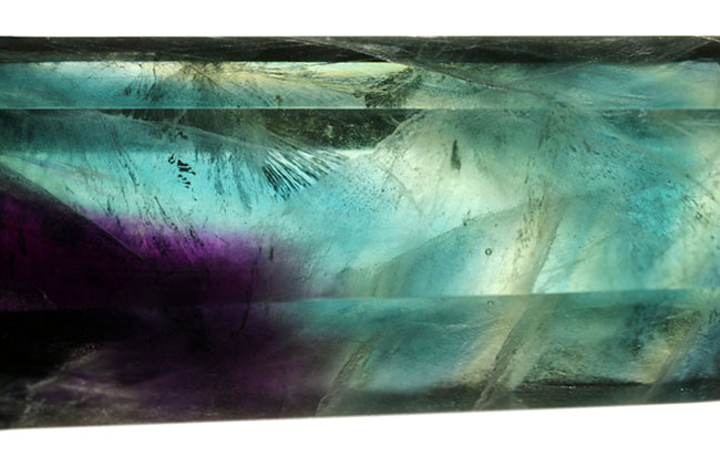 フローライトの和名は蛍石(ほたるいし)。その名の通り、ホタルのように、蛍光性を持っています。ただ、ホタルと違って自発的に光を放つのではなく、紫外線が照射されたときに弱く蛍光します。一般的な蛍光灯はほとんど紫外線を含みませんが、紫外線を含む太陽光にさらすと、写真とはまた違った、ふわっとした光沢を見せてくれます。