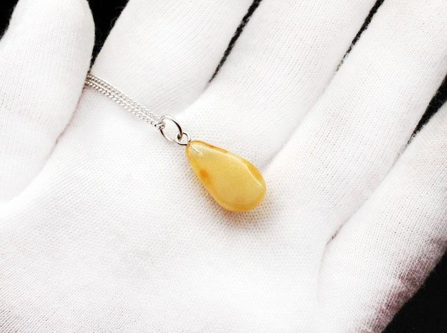 - バルト海産琥珀のペンダントトップ(Amber)。ハニーバターのようなカラーが柔らかい印象。