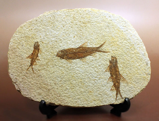 | 学名 | 美しい石灰岩の3匹のナイティア(Knightia sp.)がバランスよく浮かんだマルチプレート標本。米国ワイオミング州グリーンリバー層。 |