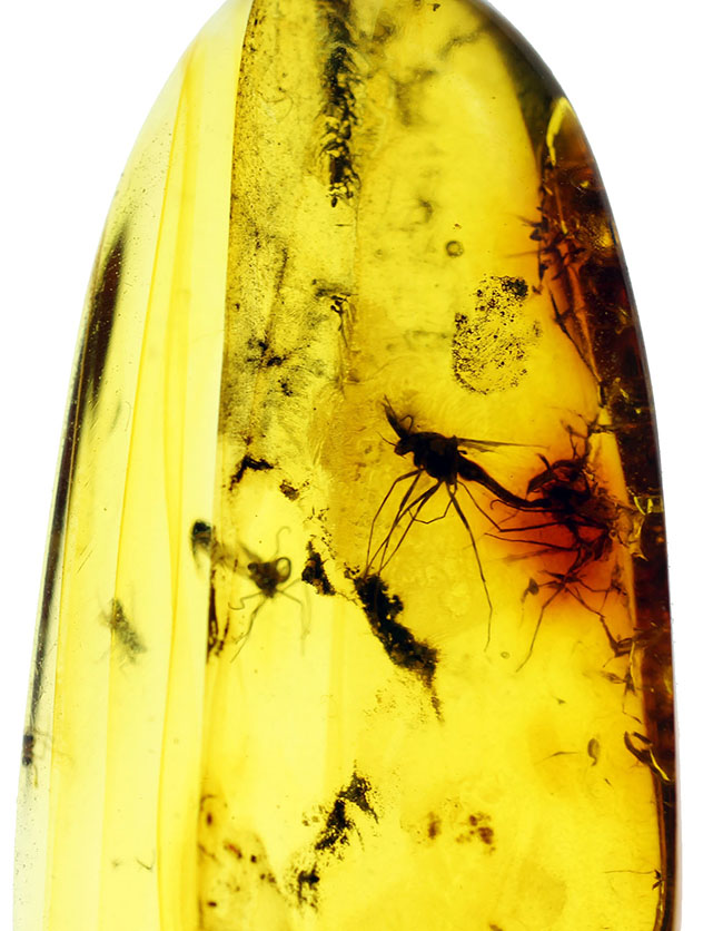 こちらはユスリカを内包したバルト海産の琥珀です。ユスリカとは蚊の仲間ですが、血を吸ったり刺したりすることはありません。ユスリカは膨大な数が柱のように集まる習性があり、蚊柱と呼ばれています。