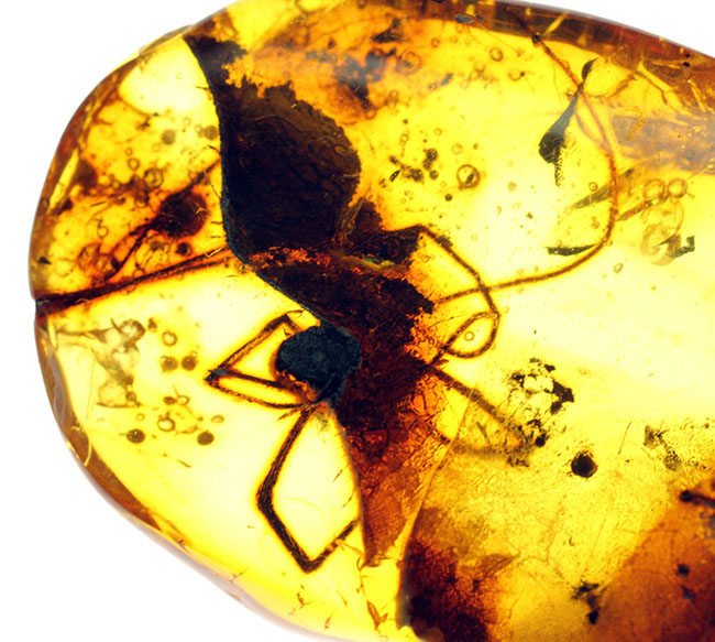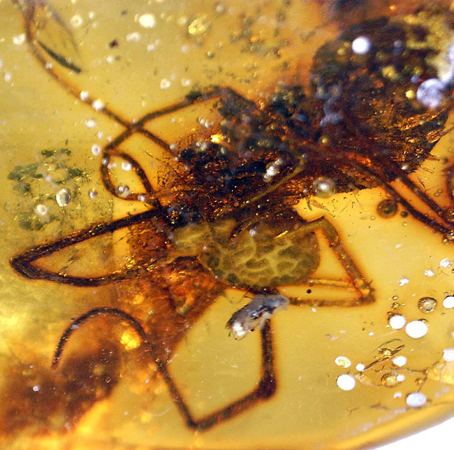 こちらは虫入り琥珀で有名なバルト海周辺で採集された琥珀です。中に大きなクモを内包しています。