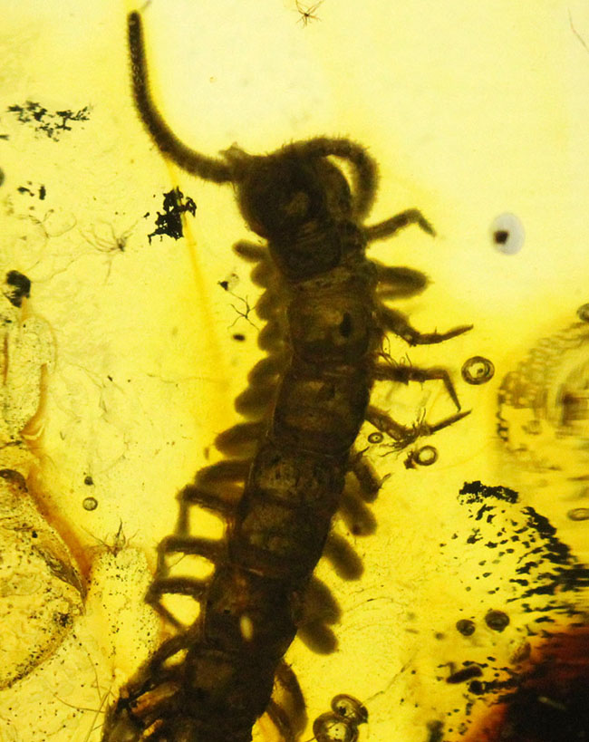 アップしてみましょう。このムカデの保存状態は極めて良好。足や触覚まではっきりと視認が可能です。