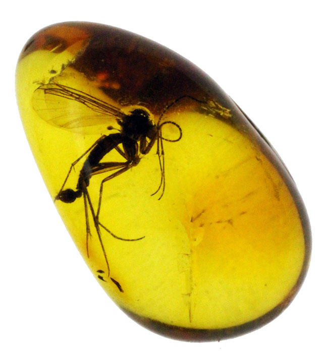 - 外部生殖器が保存。キノコバエ科の虫が包まれた虫入りバルト海産琥珀(Amber)