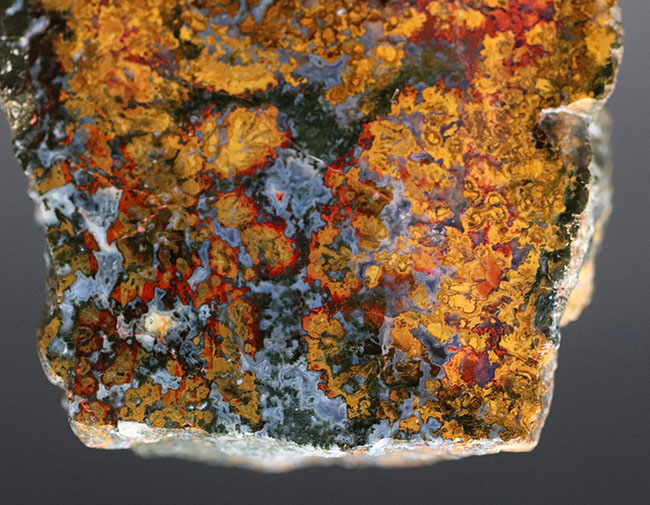 このメノウは断面を研磨したもので、一般的なメノウには見られない、美しい橙を呈します。