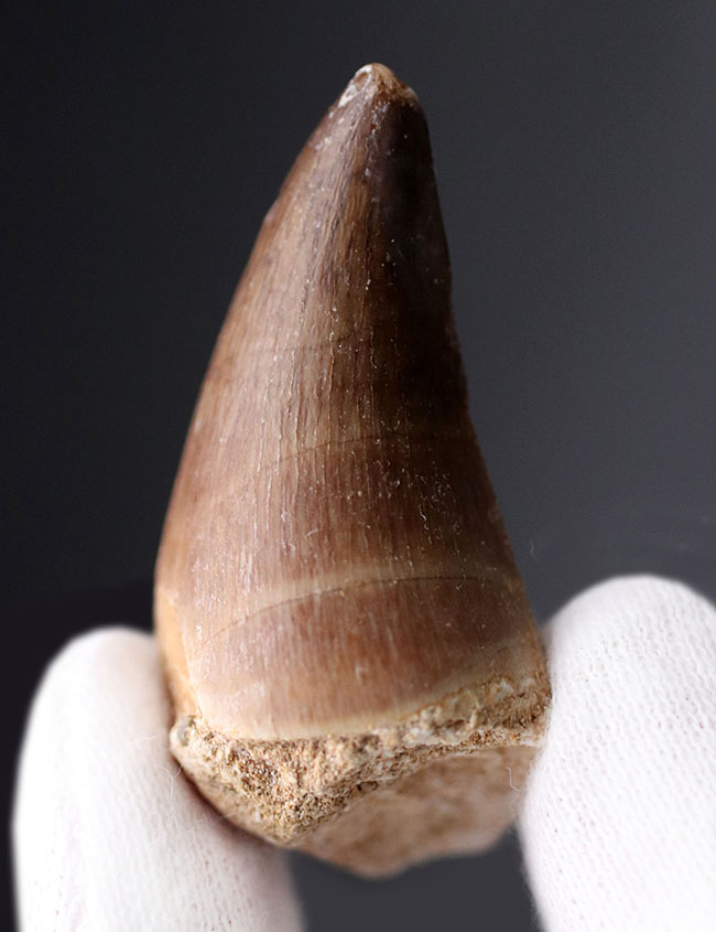 - 両面ともに傷らしい傷が見当たらない、上質の歯化石。人気のモササウルス(Mosasaurus)科の生物の歯化石