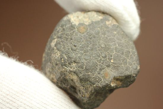 小型標本ながら、黒い溶融表皮がしっかりと確認できる、良質隕石。