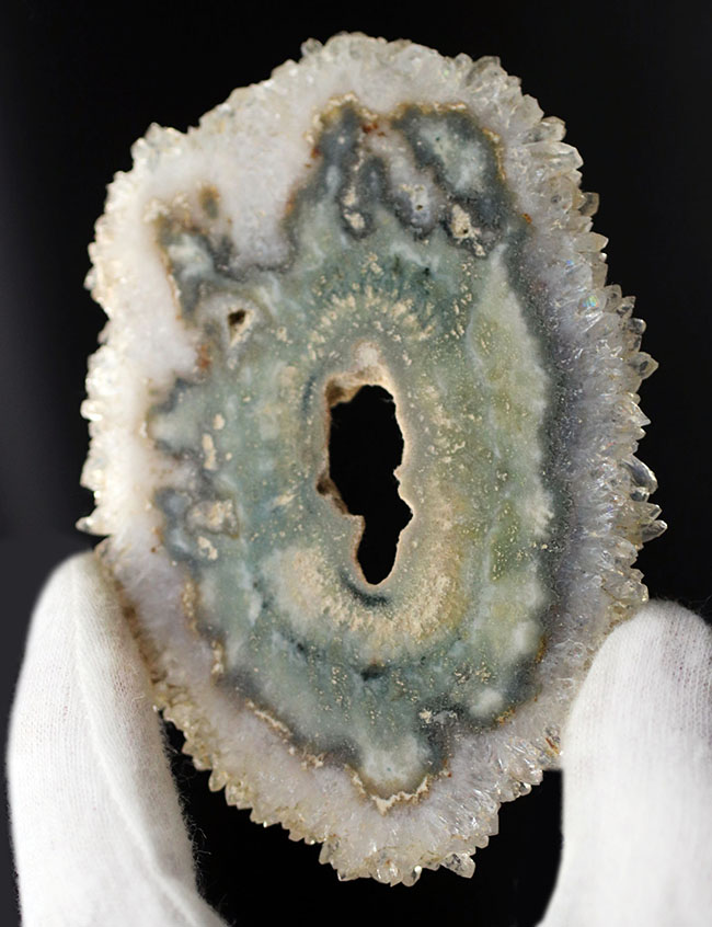 | 学名 | カルセドニー(玉髄)と石英結晶が同時に見られる不思議な鉱物、スタラクタイト |