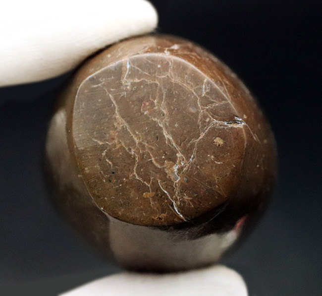 こちらはモロッコ産のデボン紀の頭足類、オルソセラスの磨石です。表面は丁寧に磨かれ光沢があります。