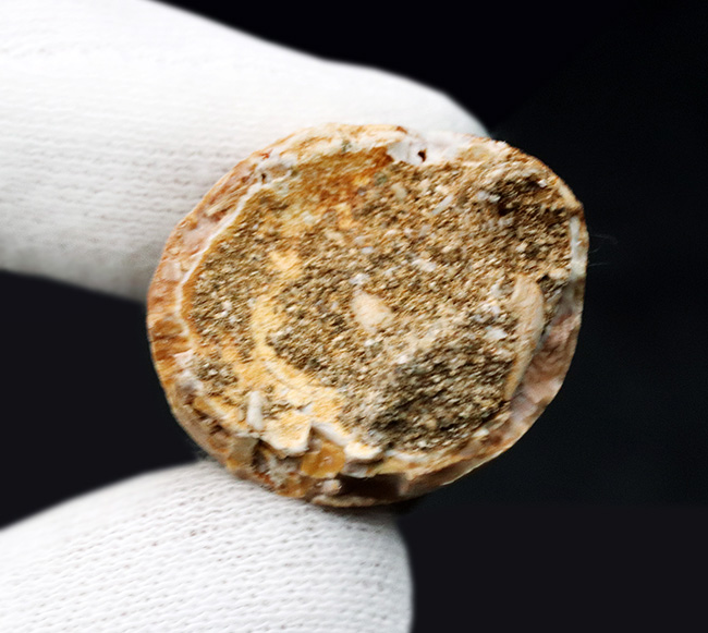 断面から撮影。非常に分厚く根本。モササウルスの歯化石は種類に関係なく、ほとんどが分厚い形をしています。周長7センチという厚み!