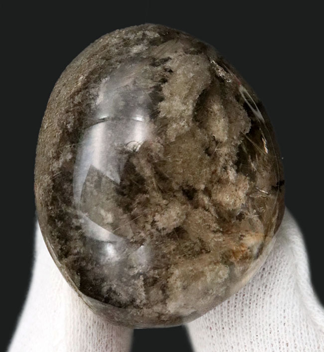 石英の表面は丁寧に磨き込まれ光沢が備わっています。いわゆるカボションです。