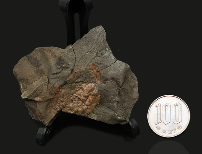 眼が生えている部分も盛り上がりも、おぼろげながら確認できます。カニの化石としては珍しい。