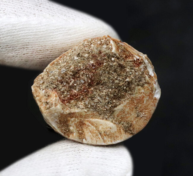 比較的多く歯の化石が出回っているが、偽造品(母岩に歯を埋め込んだものが多い)も出回っているため注意が必要です。また、出土・保存状態によって品質はさまざまです。表面がエナメル質を保ち、かつルート(根元)が太いモササウルスの歯化石は意外に数が少なく価値が高いと言われています。