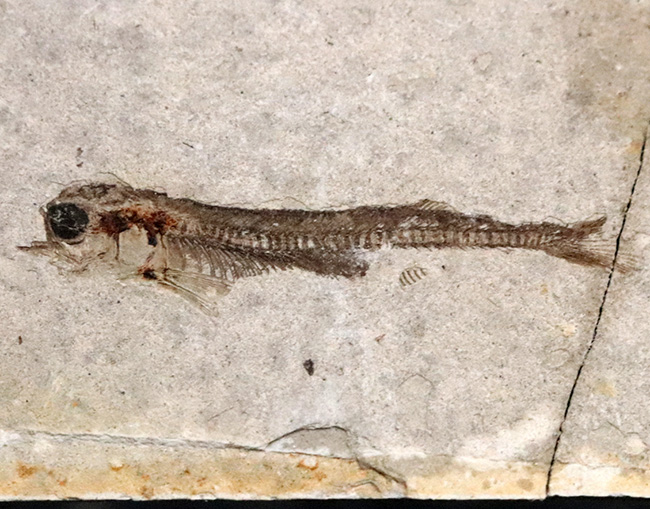 ブラジル産の魚化石。現世に生息する硬骨魚類(こうかくぎょるい)と同じ仲間。