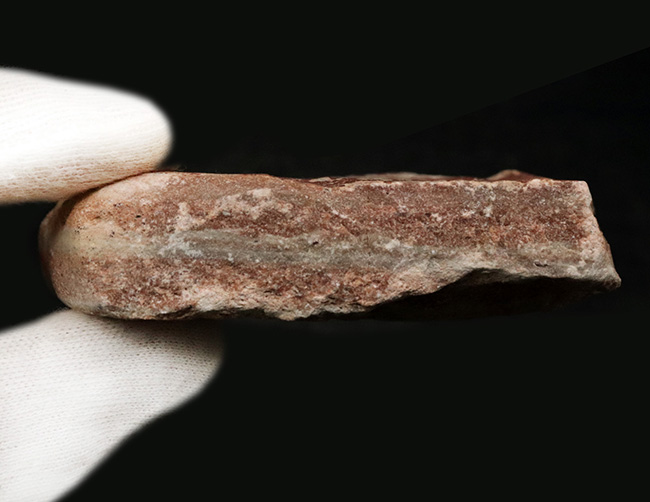 裏面です。一部に酸化鉄が沈着した部分が見られますね。鉄が豊富な地域で堆積したものと考えられます。